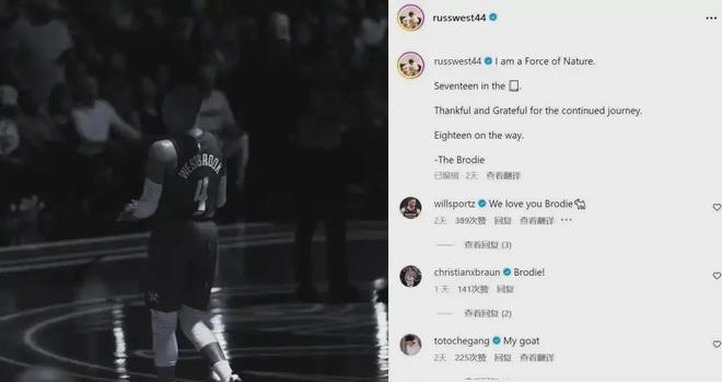 祝福威少,剩余不多的征程里能够如愿所偿!